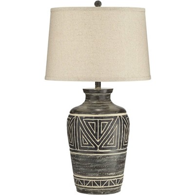 John Timberland Otero Rustic Table Lamp Southwest 27" Tall Faux Mottled Stone Cream Linen Drum Shade for Bedroom Living Room Bedside Nightstand Kids
