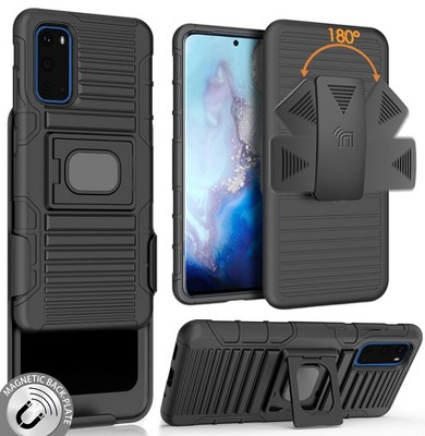 Nakedcellphone Combo for Samsung Galaxy S20 - Ring Grip/Stand Case and Belt Clip Holster - Black