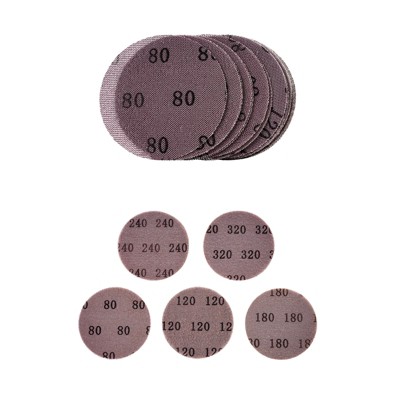 VEVOR 5-inch Mesh Abrasive Sanding Discs 50PCS, Grit 80/120/180/240/320 Assorted Anti-Clogging Ceramic Mesh Sandpapers, Red-Brown