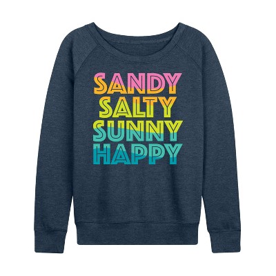 Women's - Instant Message - Sandy Salty Sunny Happy Lightweight French Terry Wide Neck Long Sleeve Graphic Shirt