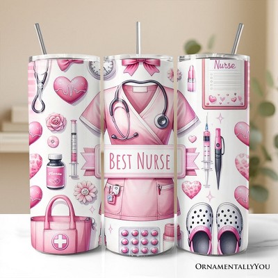 Pink Nurse Life 20oz Tumbler With Stainless Steel Straw, Medical Worker Appreciation Gift (Non-Custom Only)| OrnamentallyYou