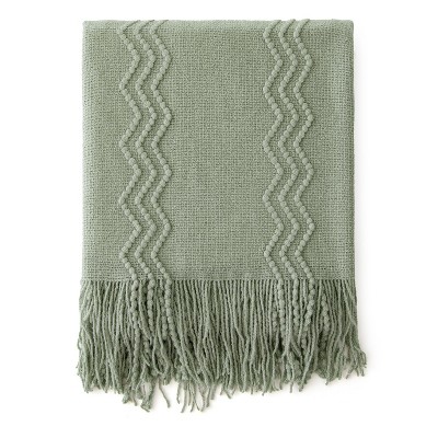 HomeRoots 50" X 67" Olive Green Cotton Blend Woven Throw Blanket with Fringe
