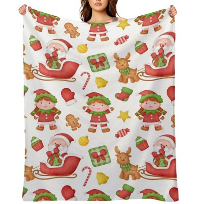 FIONECA Cute Santa Sleigh Christmas Blanket with Elf Gingerbread Reindeer Soft Fleece Cozy Holiday Throw Blanket 40x50 inches