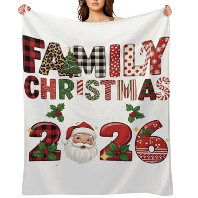 Soscooter 2026 Happy New Year Flannel Throw Blanket Santa Claus Number Pattern Christmas Festive Cozy Holiday Blanket