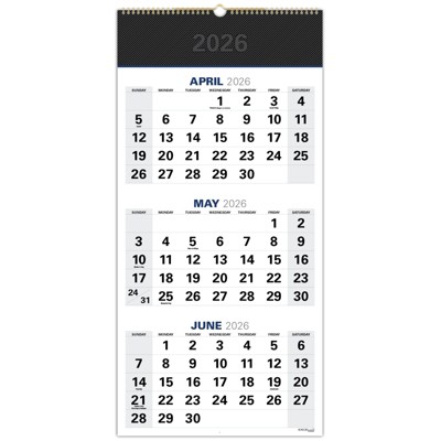 2026-2027 27" x 13" Academic Year Large Print 3 Month View Wall Calendar, Monthly, 21 Month, Black