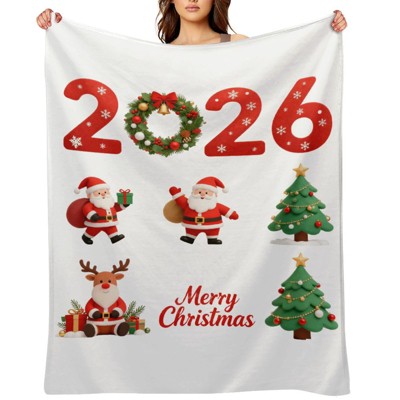 Soscooter 2026 New Year Flannel Blanket Santa Claus Reindeer Pattern Soft Cozy Throw Blanket for Holiday Gift Decor