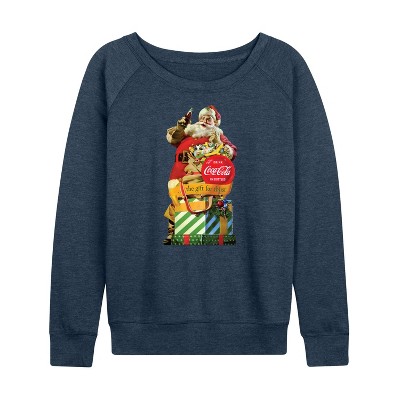 Women's - Coca-Cola - Vintage Santa Claus with Presents Lightweight French Terry Wide Neck Long Sleeve Graphic Shirt