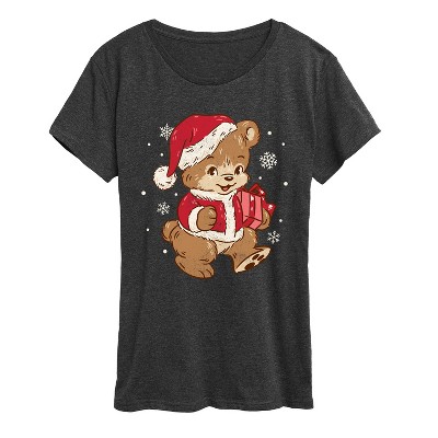 Women's - Instant Message - Santa Teddy Bear Oversized Graphic T-Shirt