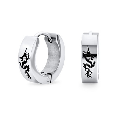 Bling Jewelry Laser Etched Dragon Mini Hoop Huggie Earrings Stainless Steel Color - Silver Tone