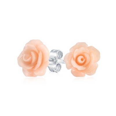 Bling Jewelry Romantic 3D Carved Flower Pink Peach Rose Stud Earrings Lightweight 10MM