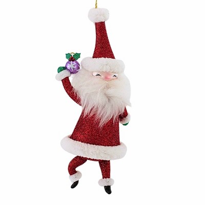 De Carlini Italian Ornaments 8.0 Inch Hollydance Sparkle Claus Christmas Tree Ornament , Christmas Decor Glittered Santa (1PC)