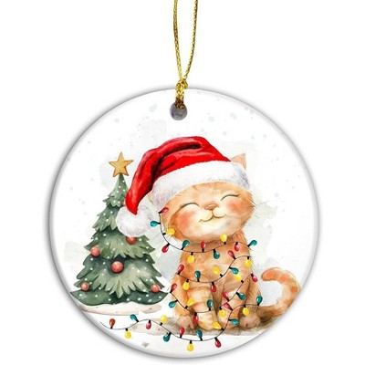 Lomsoe Cat Christmas Ornament Kitten with Santa Hat and Fairy Lights Ornament Funny Cat Lover Gift Christmas Tree Decor for Pet Owners
