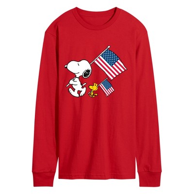 Men's - Peanuts - Snoopy & Woodstock USA Flags Long Sleeve Graphic T-Shirt