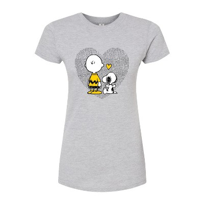 Women's - Peanuts - Charlie Snoopy Dot Heart Fitted Graphic T-Shirt