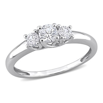 EVERLY JEWELRY | 10K White Gold 5/8 CT TGW Created White Sapphire 3-Stone Engagement Ring