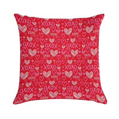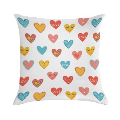 Set of 2 18x18in Multicolor Doodle Hearts Valentine Pillow Covers - Washable, Hidden Zipper