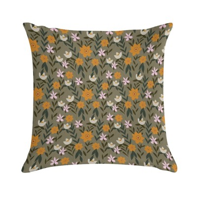 Set of 2 18x18in Olive Green Multicolor Floral Pillow Covers - Washable, Giftable, Soft
