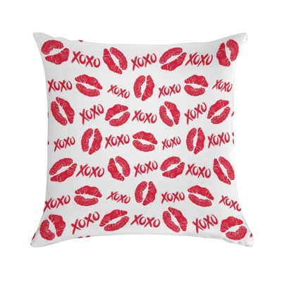 Set of 2 18x18in Polyester Short Pile Valentine Pillow Covers - Lips XOXO Print Hidden Zipper Easy Care Bedroom Guest Kids Room