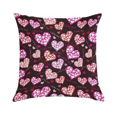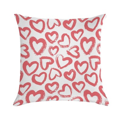 Set of 2 18x18in Polyester Short Pile Valentine Pillow Covers - Red Brush Heart Print Easy Care Home Decor