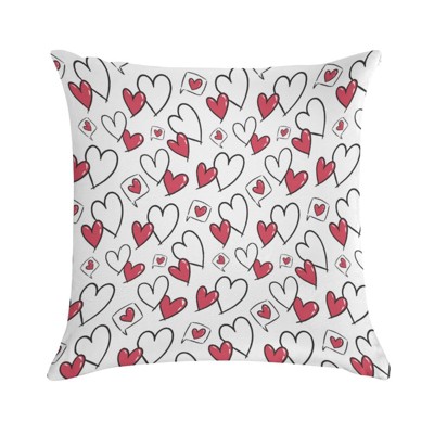 Set of 2 18x18in Polyester Short Pile Valentine Pillow Covers - Red Black Doodle Heart Print Easy Care Home Decor