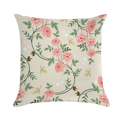 Set of 2 18x18in Cream Pink Floral Vine Pillow Covers - Durable, Giftable, Soft