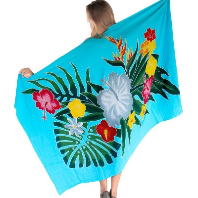 LA LEELA Women's Long Beachwear Vacation Swimsuit Wrap Sarong Swimwear Cover up Wraps One Size Blue, Floral