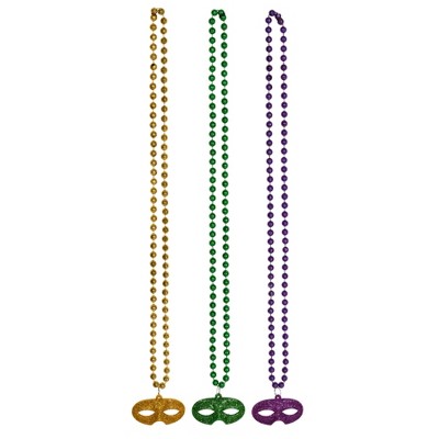 Beistle Beads w/Glittered Mask Medallion, 33", (12/Pkg) Multicolored