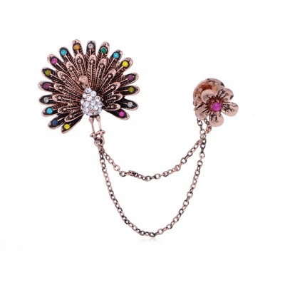 Alilang Dangling Flower Multicolored Rhinestone Copper Tone Peacock Fashion Fashion Brooch - Multicolor