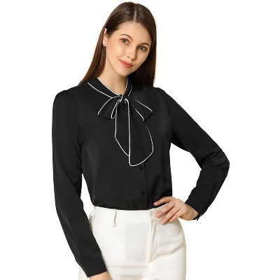Women's Plus Size Office Formal Long Sleeve Tie Neck Satin Blouses - Agnes Orinda