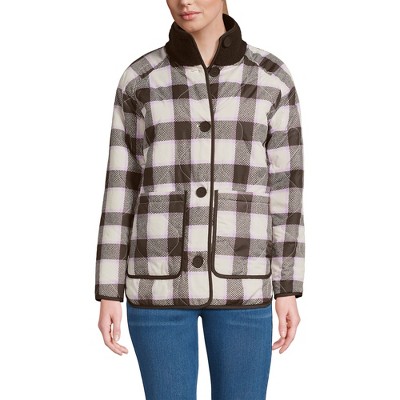 Lands' End Women's High Pile Fleece Reversible Mixed Media Long Jacket