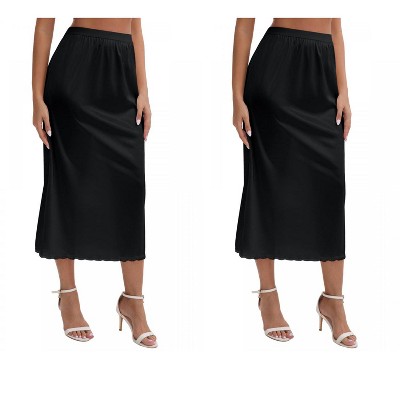 INSPIRE CHIC Women's Satin Soft Lace Trim Flared Hem Lightweight Solid Half Slip 2 Packs