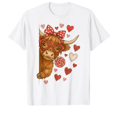 Fioneca Valentine Highland Cow Coquette XOXO Howdy Western T-Shirt