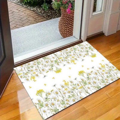 Lomsoe 1pc Flannel Floor Mat, Daisy and Yellow Flower Pattern Mat, Perfect for Entrance, Kitchen, Laundry Room, Bedroom, Living Room Decor.