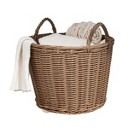Round Handwoven Water Hyacinth and Seagrass Basket with Handles, Natural