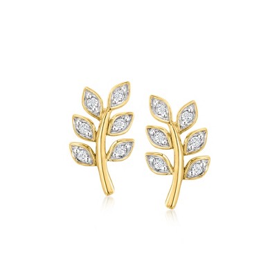 Ross-Simons 0.12 ct. t.w. Diamond Leaf Earrings in 18kt Gold Over Sterling