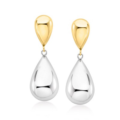 Ross-Simons Sterling Silver and 18kt Gold Over Sterling Teardrop Earrings