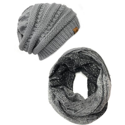 Wrapables Plaid Print Infinity Scarf and Beanie Hat Set, Gray/Wine and Gray Set