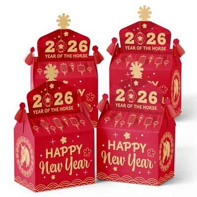 Big Dot of Happiness Lunar New Year - Treat Box Party Favors - 2026 Year of the Horse Goodie Gable Boxes - Set of 12