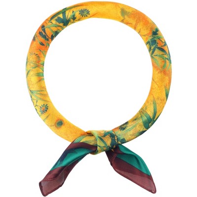 INSPIRE CHIC Women's Floral Printed Satin Square Flowers Silky Neck Scarves 1Pc