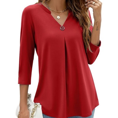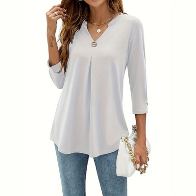 3/4 Length Sleeve Womens Tops V-Neck Blouses Dressy Casual Flowy Shirts Business Tunic Top