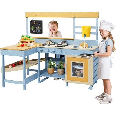 TopComfy Baby and Toddler Learning Toys 2 in 1 Grocery Store and Ice Cream Cart Playset with Accessories Toy for Kids, Yellow, 25.79"*13.86"*13.86"