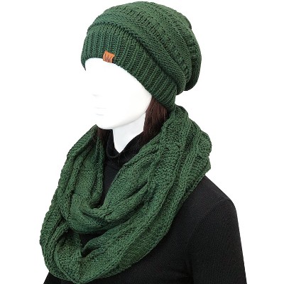 Wrapables Winter Warm Chunky Cable Knit Infinity Scarf and Beanie Set, Hunter Green
