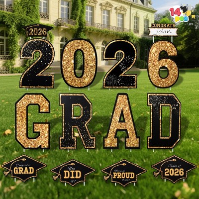 Joyfy 14 Pcs Graduation Yard Signs Class of 2026, Black Gold Congrats Grad Lawn Stakes for Outdoor Graduation Party Decor College High School Supplie
