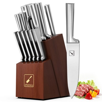 imarku Kitchen Knife Set 15 Pieces Japanese Stainless Steel Knife Block Set with Sharpener - Dishwasher Safe Kitchen Knives, Silver
