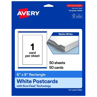 Avery Printable Matte White Cards with Sure Feed, 6" x 9" Rectangle