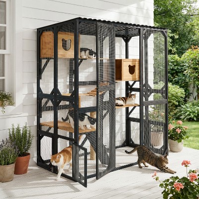 NAYSAYE Cat House Triangles Cats Shelter Feral with Escape Door of Cat Pattern Indoor Outdoor Easy Install Clean Balcony, Black, 23.82"*25.59"*25.67"