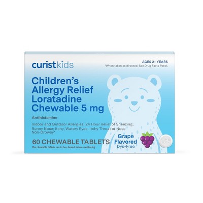 Curist Children's Allergy Medicine Chewable 60 count (Loratadine 5mg) Grape - Sneezing, Runny Nose, Itchy Eyes - Kids Allergy Medicine Chewable Tablet