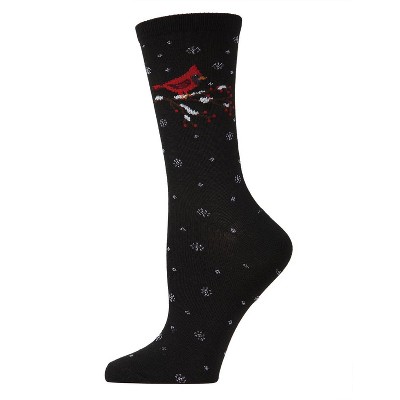 Memoi Women's Christmas Cardinal Crew Socks Black One Size