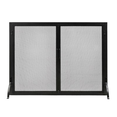 HomeStock Multi Color Glass 3-Panel 40 in. Folding Fireplace Screen with Doors great for enhancing cozy home decor