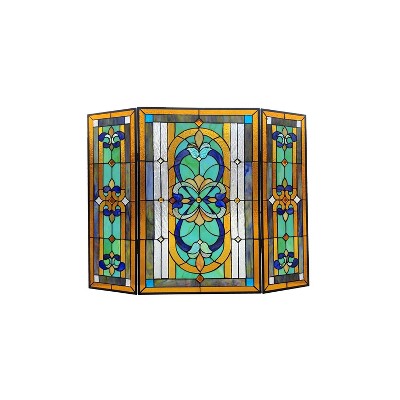 Chloe Lighting Tiffany-Glass 3pcs Folding Victorian Fireplace Screen 40" Wide